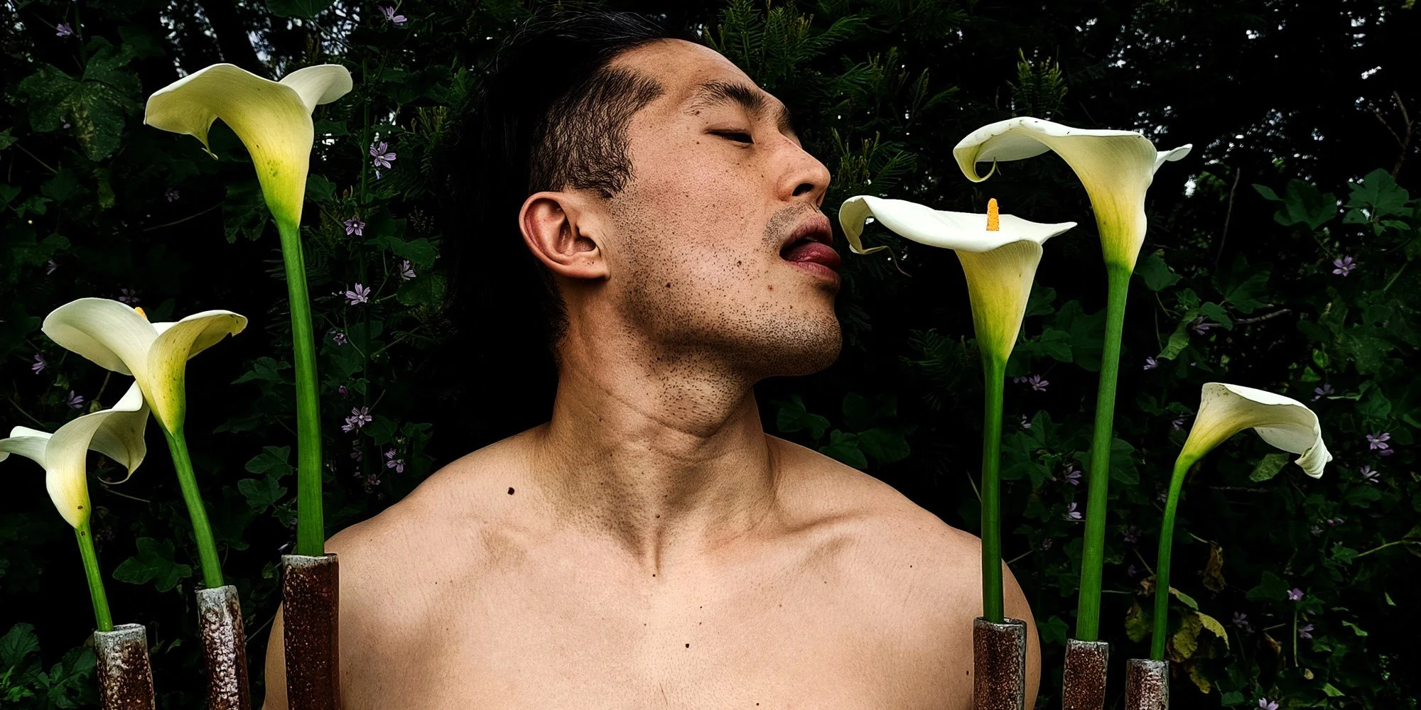 I take my time admiring the photographs. They capture the artist, Sung Hwan Bobby Park. I give him a brief hug and spare him a conversation. On the walls he is wearing a harness and hat, leather chaps, ass protruding. In the hallway he is wearing what I’ve come to understand is his trademark linen shirt and the smile an artist has for people who’ve come to appreciate their work.