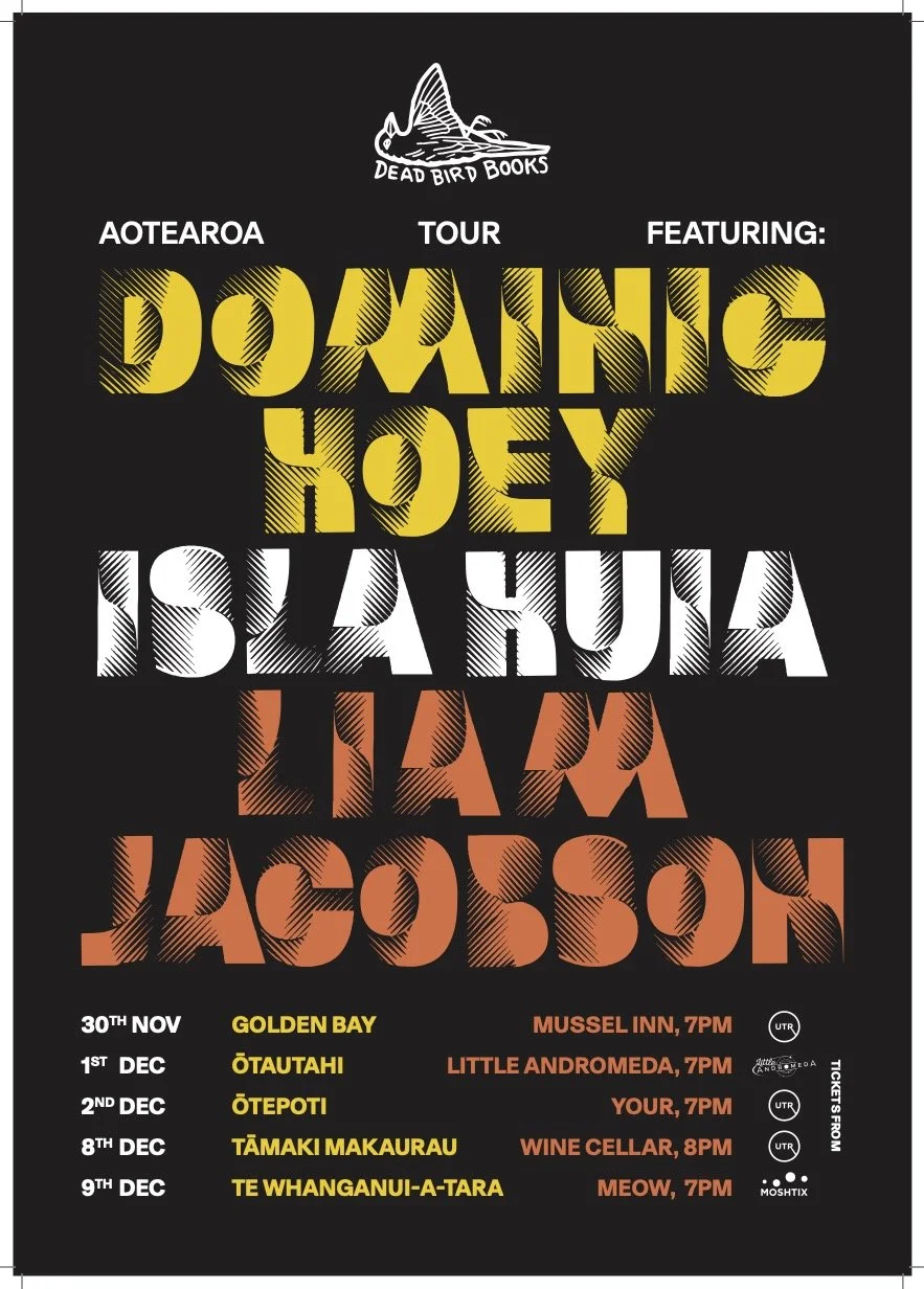 Dominic Hoey will be joining Isla Huia and Liam Jacobsen for an Aotearoa Book Tour from November 30th - book your tickets here!