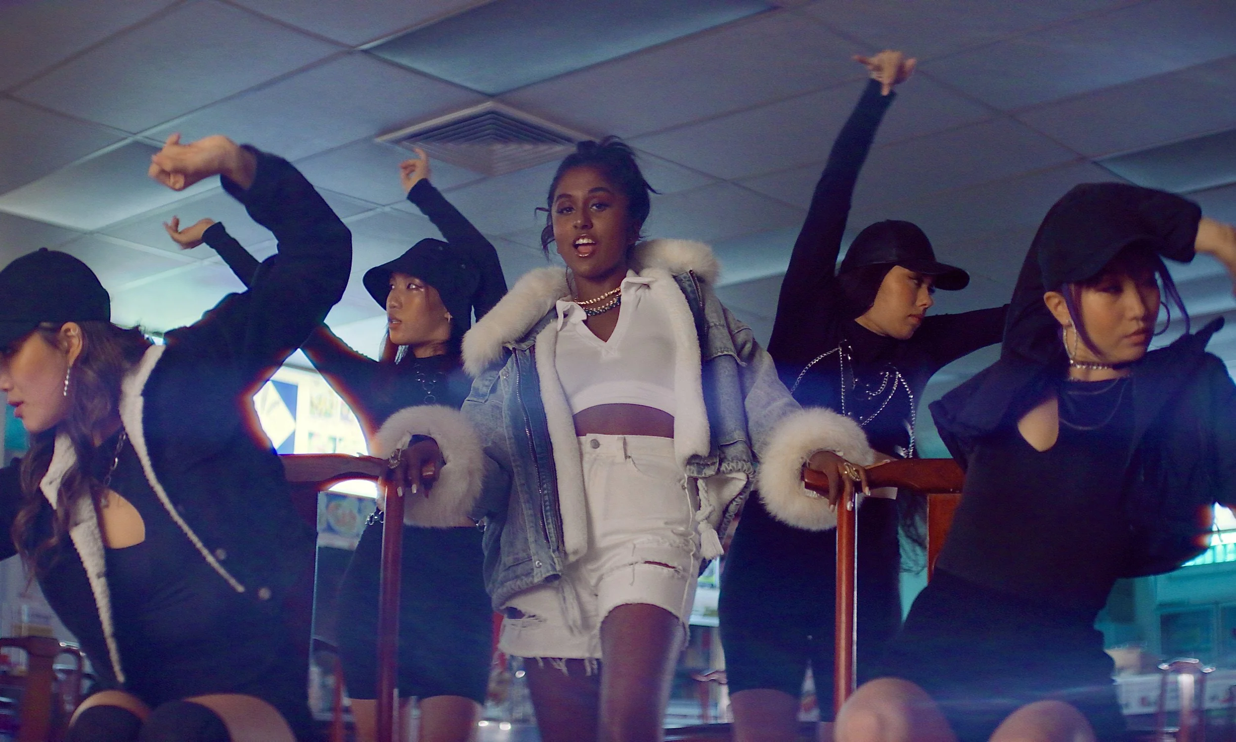 RESHMA: I managed to actually make that music video a reality because of Auckland City music. I received the Equaliser Grant which meant I could work with a female director in the New Zealand creative scene. I got paired with Jolin Li which is kind of perfect because she’s Singaporean and I’m Malaysian. So, we decided to experiment with the editing style and VFX aesthetic from back home. Honestly, what stops a lot of creatives, especially people who are not from Aoteroa or who want to experiment, is lack of capital. We had the capital and it meant we could be like, fuck it! Let’s do everything we can! Let’s have the most fun - let’s book a food court, let’s reach out to Rina Chae (who is iconic), let’s get as many POC people on board to come and create this thing. I really enjoyed that energy. People were so buzzed and passionate about what the song meant to them. And of course we had people who weren’t POC on set, but we were able to have conversations about it, which is exactly what I wanted to happen.