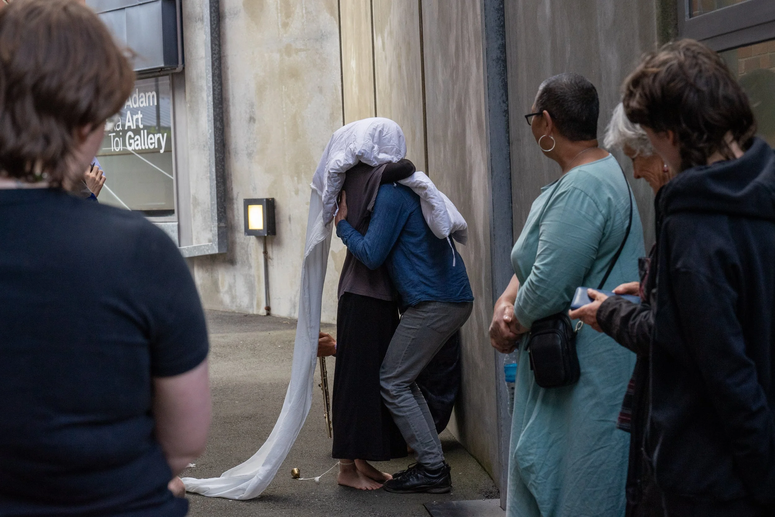 This year PAWA was hosted by Adam Art Gallery, situated in Kelburn Campus of Te Herenga Waka—Victoria University of Wellington. Galleries in Aotearoa are typically divided into two categories: institutional or artist-run, with the latter often taking a more DIY and lateral organisational approach. In crude terms the trade-off for artists seems to be something along the lines of institutions bestow legitimacy but there can be an inherent incompatibility between specific art forms or projects that do not fit neatly into the mould carved out by pre-existing critical-cultural norms. Speaking to Louie Zalk-Neale (Ngāi Te Rangi, Pākehā) they spoke about how most galleries in Aotearoa are still part of a larger colonial legacy. Asking them to elaborate further, they explain how “when you feel comfortable [in a space], you get more out of it.” Noting the ways in which performance art responds to space, bodies also respond to space and especially to spaces that have historically imposed certain realities or feelings on them. “Performance art could not be easily transposed from a gallery to a marae context,” they say, without acknowledging that the different environments have different expectations, different worldviews, and different value-systems. Much like the ongoing question of how funding changes, restricts, or determines an artwork, the gallery is subject to similar ambiguity; the overall feeling being that one must never be seen to bite the hand that feeds.