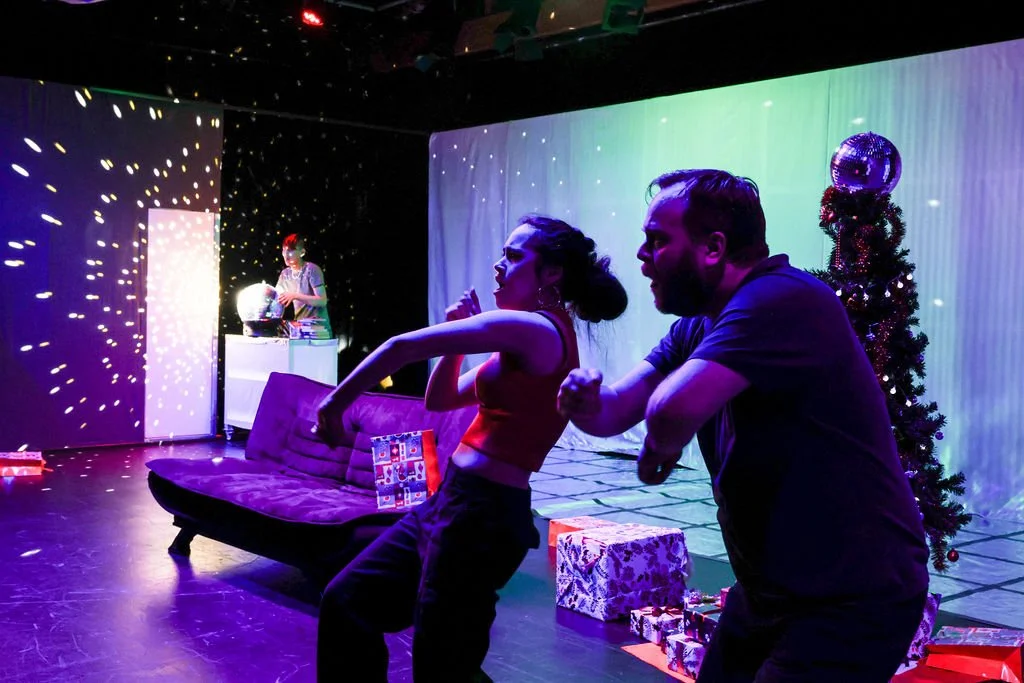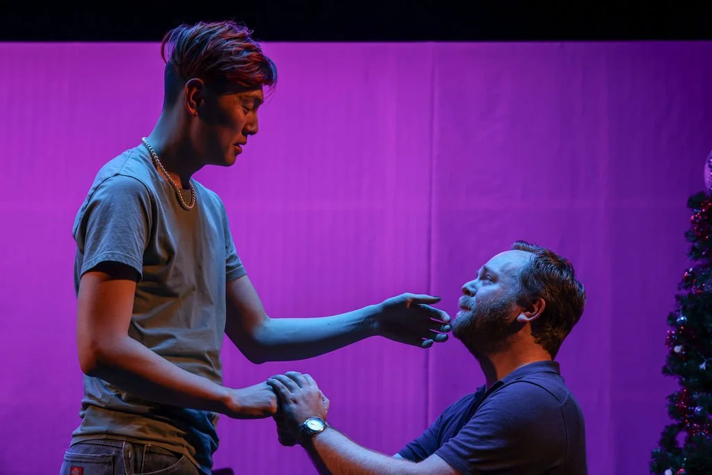 Losing Face is Nathan Joe’s take on a domestic drama. On the face of it, the show is a reconciliation between Jennifer (Shervonne Grierson) and her father Mark (Andrew Ford) at a Christmas Eve dinner with Mark’s new boyfriend Shawn (Danny Lam). But it’s anything but conventional. To Joe, there was something appealing about tackling the oldest form of conventional playwriting. With this play, Joe is “pondering [his] roots as a playwright” and trying to honour “the whakapapa of playwriting,” but doing it in a way that “feels deeply queer, deeply Asian, deeply [himself] as much as feels right or possible.” What he’s come up with is “a domestic drama on loop… that’s trying to get itself right or correct course.” This is evident in the first few minutes of the show. The characters continually reset the scenario until the ‘right’ line is said and the scene progresses to the next checkpoint, and it continues to reset there until the next ‘right’ line is said, and so on. It’s, in essence, a series of failed reconciliations between a parent and their child.
